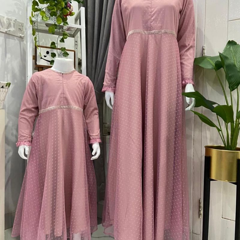 TUNIK IBU DAN ANAK TUNIK COUPLE ELEGANT TUNIK TULLE POLKA