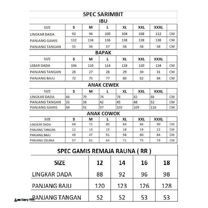 Produk ini memiliki 10 Variasi Ukuran yaitu : S,M,L,XL,XXL,XXXL,12,14,16,18,.