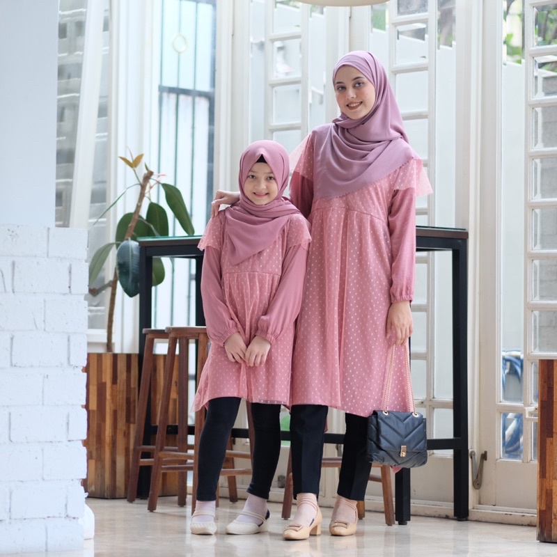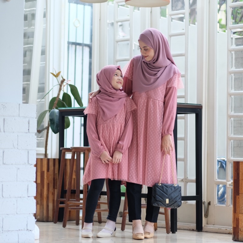 Review ATASAN COUPLE IBU DAN ANAK TUNIK COUPLE TULLE POLKADOT