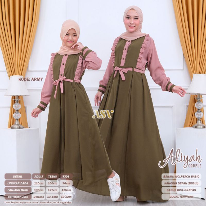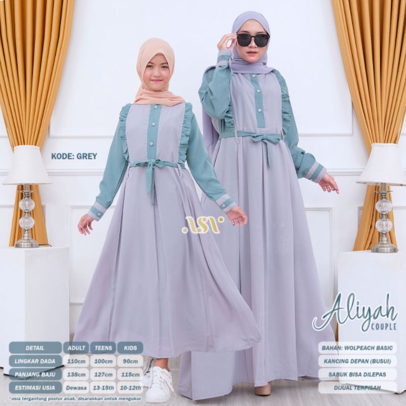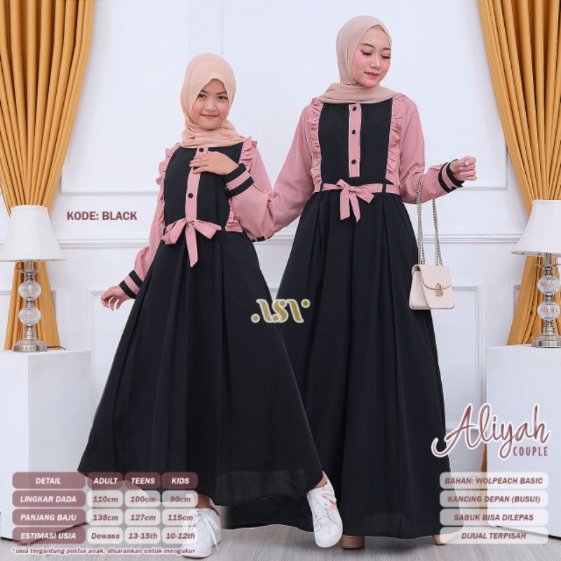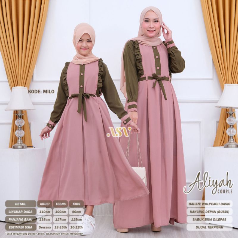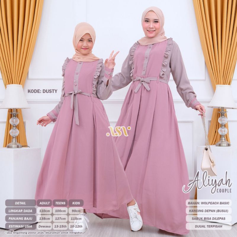 Nama Lengkap | Gamis Couple Ibu Dan Anak Bahan Wolfis / Bahan Shakila Polos Aliyah Dan Rayya Couple (Dijual Terpisah) |