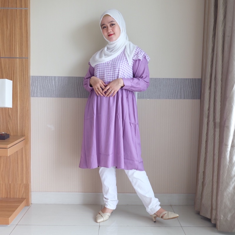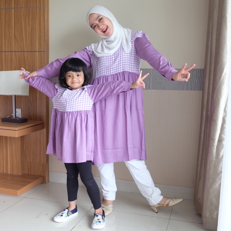 Kelebihan TUNIK COUPLE IBU DAN ANAK ATASAN COUPLE IBU ANAK RAFFLE KOTAK UNGU