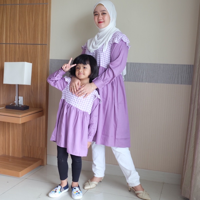 Review TUNIK COUPLE IBU DAN ANAK ATASAN COUPLE IBU ANAK RAFFLE KOTAK UNGU