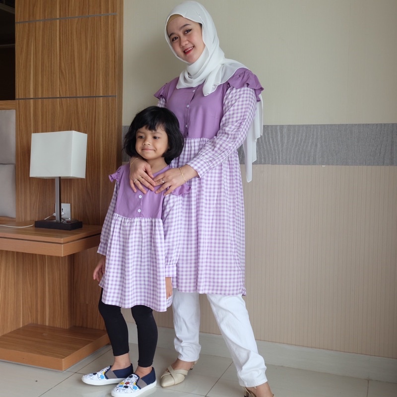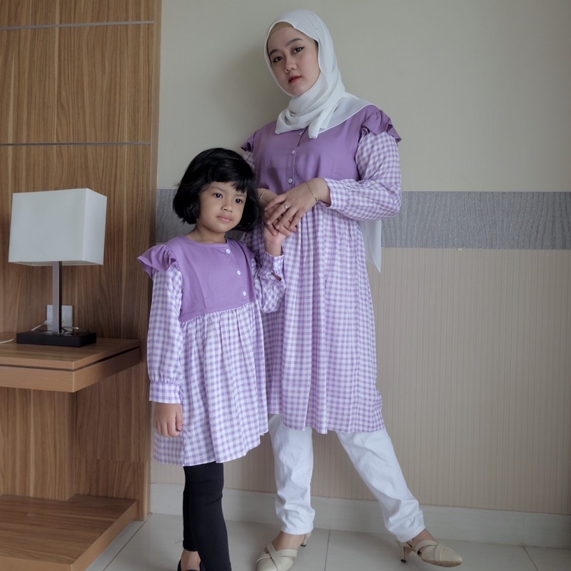 Review TUNIK COUPLE IBU DAN ANAK ATASAN COUPLE POLOS RAFFLE UNGU KOMBINASI