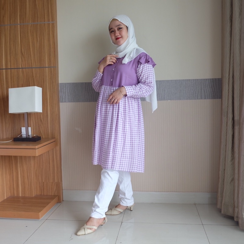 Nama Lengkap | TUNIK COUPLE IBU DAN ANAK ATASAN COUPLE POLOS RAFFLE UNGU KOMBINASI |