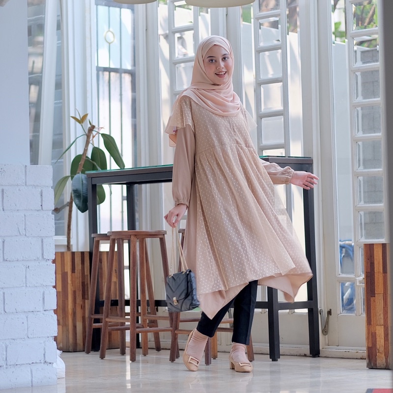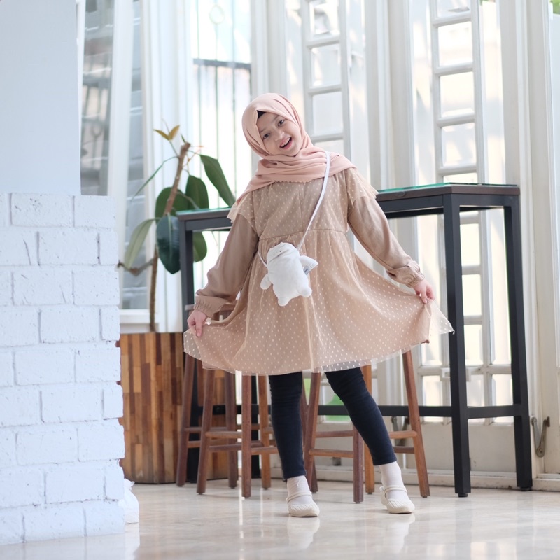TUNIK COUPLE IBU DAN ANAK TUNIK COUPLE ELEGANT TUNIK TULLE POLKA