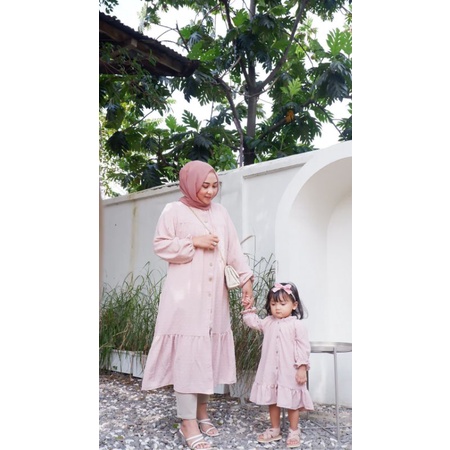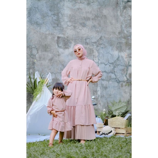 Sarimbit keluarga rauna GF KF RF GAF KAF 04 Coral / baju couple keluarga / fashion muslim / gamis ibu dan anak / koko ayah dan anak